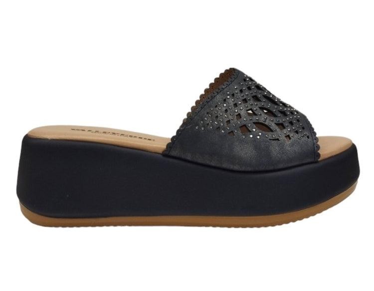 Ciabatta dallo stile contemporaneo che offre leggerezza e comfort, facile da indossare, la sua tomaia presenta una maxi fascia con strass che le dona un look deciso. Perfetto per completare gli outfit urban della stagione estiva, aggiunge un tocco di glamour rilassato al guardaroba quotidiano